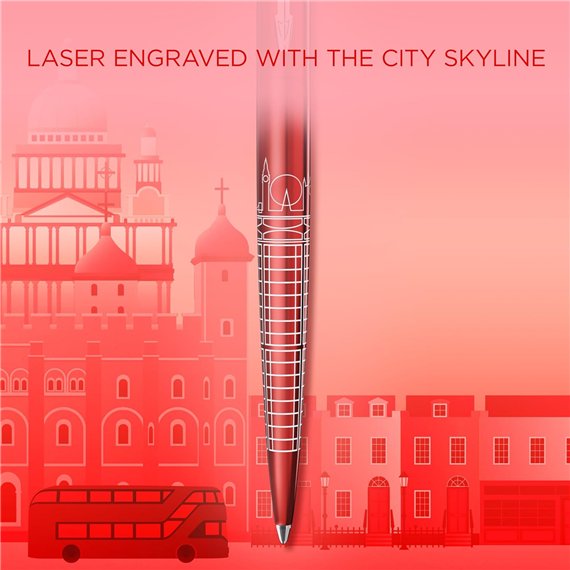 Questa elegante Jotter fa parte dell’ultima collezione in edizione speciale Global Icons e rappresenta alla perfezione le architetture storiche e moderne della metropoli. Lo skyline inciso a laser con cura meticolosa sul fusto con finitura in lacca rossa dimostra la maestria artigianale Parker, donando alla Jotter il tocco di raffinatezza che contraddistingue le penne di lusso. Questo eccezionale strumento, pensato per gli adulti che desiderano esplorare il mondo della scrittura elegante, diventerà il compagno ideale di ogni avventura. Questa serie di Jotter Global Icons in edizione speciale rende omaggio alle più belle città del mondo. Ogni penna è pensata per diventare un pezzo da collezione o un raffinato regalo per una persona veramente speciale. Ciascuna Jotter Edizione Speciale è venduta all’interno di una speciale confezione regalo con una grafica ispirata alle più celebri attrazioni della metropoli. Un autentico invito a mettersi in viaggio.