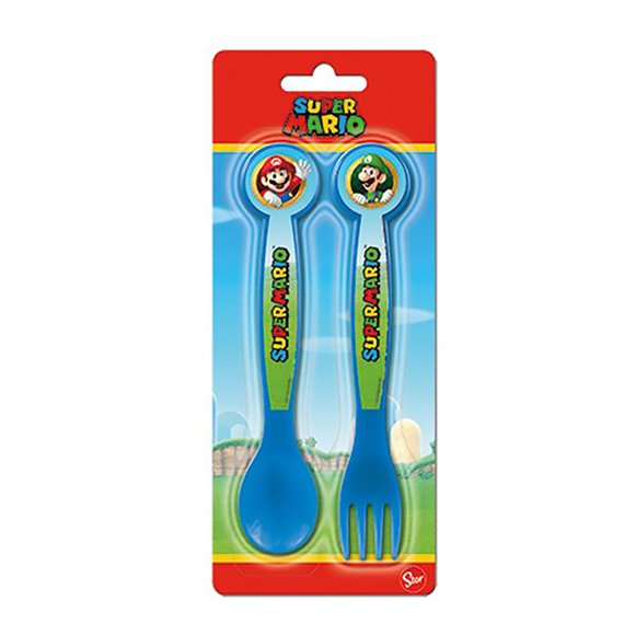 Stor 26 Set 2 Posate Cucchiaio e Forchetta Super Mario