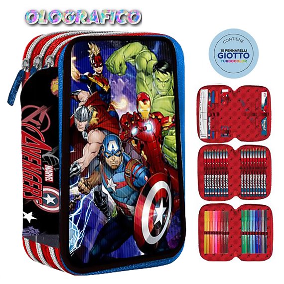 SC 26 Astuccio 3 Zip Olografico Avengers