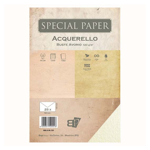 Buste Bapi Acquerello Avorio 12x18 120 gr. 25 pz. (Fine Stock)