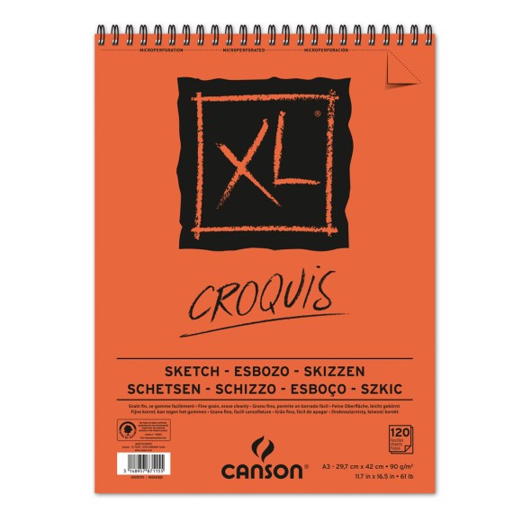 Album Spiralato Lato Corto Xl Croquis A3 120 Fg. 90 G/m². Carta A Grana Leggera Ideale Per Schizzi A Matita, Carboncino, Sanguigna E Pastello.