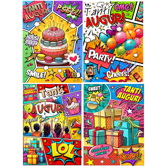 Biglietti Cecami 25 Compleanno fumetti FA00209BC/12 12 pz.