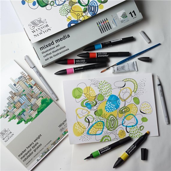 Contenuto del set: 6 Promarker, 2 fineliner, gouache, pennelli e set di fogli