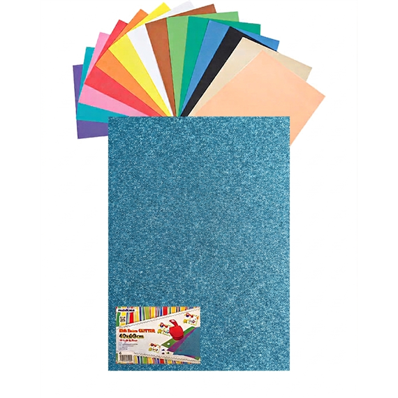 Eva Foam Gomma Espansa Glitterata E Fluo Da 2 Mm. Misura 40 X 60 Cm. In Busta Da 10 Pezzi Per Colore, 20 Colorazioni Disponibili